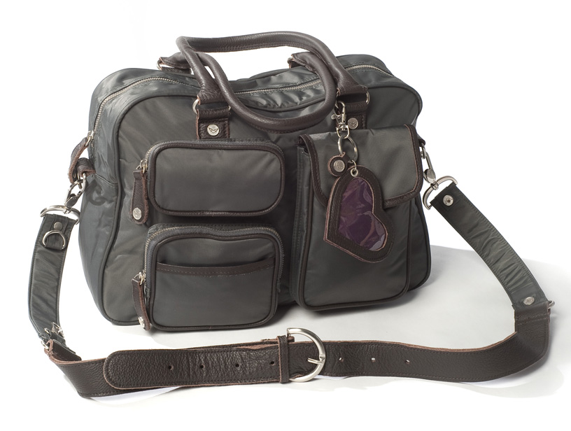 Kleinere Dinge können in den aufgesetzten Außentaschen optimal sortiert werden und im Innenraum haben alle wichtigen Baby Utensilien ihren vorgesehenen Platz. Dazu kommt ein Kosmetiktäschchen, das mit einem Klettverschluss befestigt auch einzeln mitgenommen werden kann und natürlich der kultige, abnehmbare Schlüsselanhänger aus Leder in Herzchenform mit Photofunktion, das Markenzeichen aller klassischen Wickeltaschen von petit amour.
