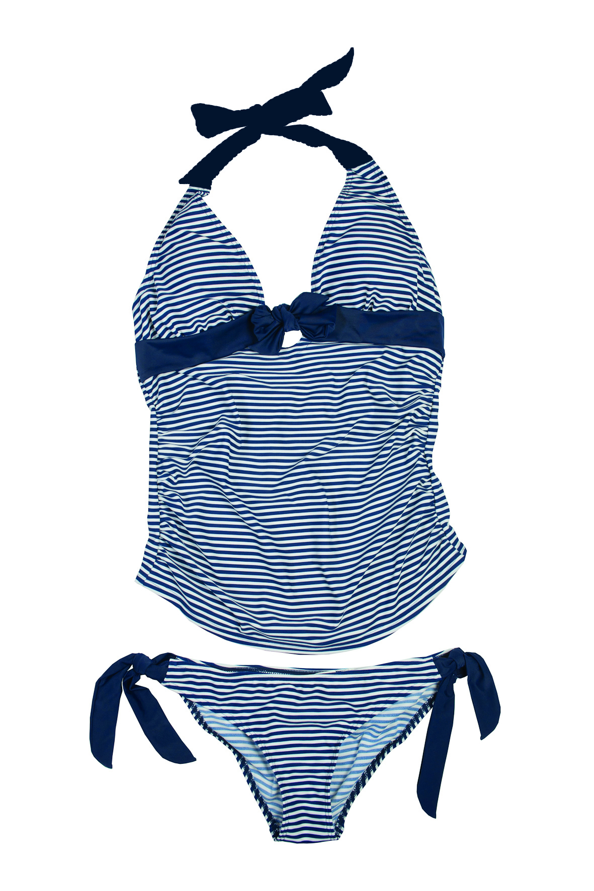 Wieder frisch eingetroffen ist dieser wunderschöne Tankini im angesagten Maritimlook! Das reizend im Nacken zu bindende Tankinioberteil in der klassischen Navy-Weiß Kombination verkörpert einfach Sommer und Sonne an der Cote d´Azure mit Ihren eleganten Yachten. Das Top ist ausgestattet mit herausnehmbaren, gemouldeten Polstern und einer elastischen Verstärkung unterhalb der Brust. Dezent und geschickt konstruierte Raffungen geben genügend Raum und Form für einen perfekten Sitz und Halt.