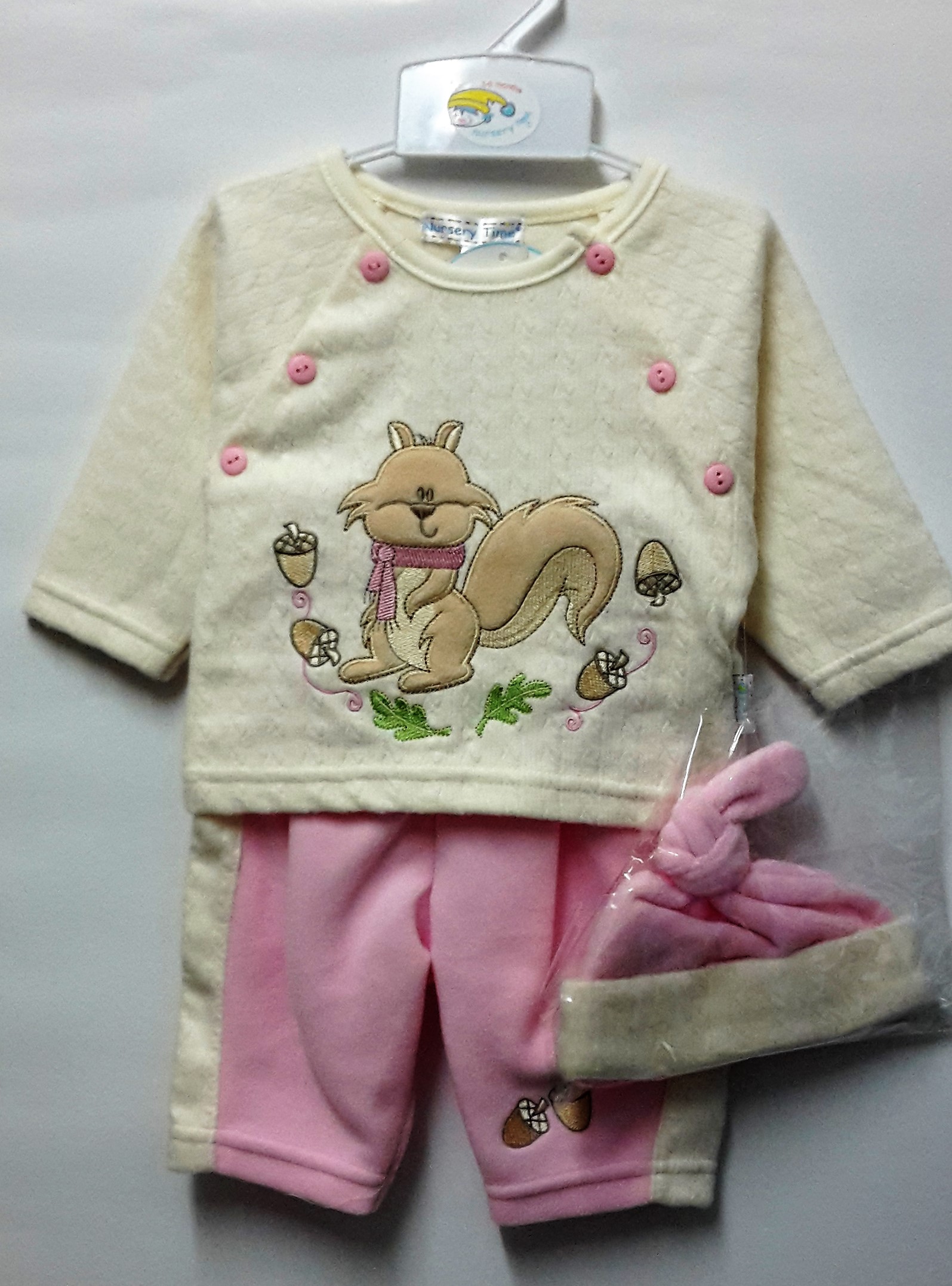 Das Set 3-teilig besteht aus einem niedlichen Sweatshirt mit süssen Stickerei und Applikationen, einer passenden Hose mit Stickerei und Mützli.