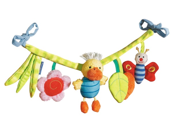 Die farbenfrohe Kette aus weichem Plüsch unterhält das Baby mit lustigen Naturmotiven.