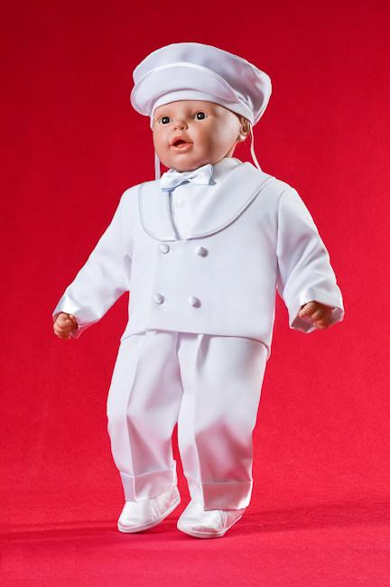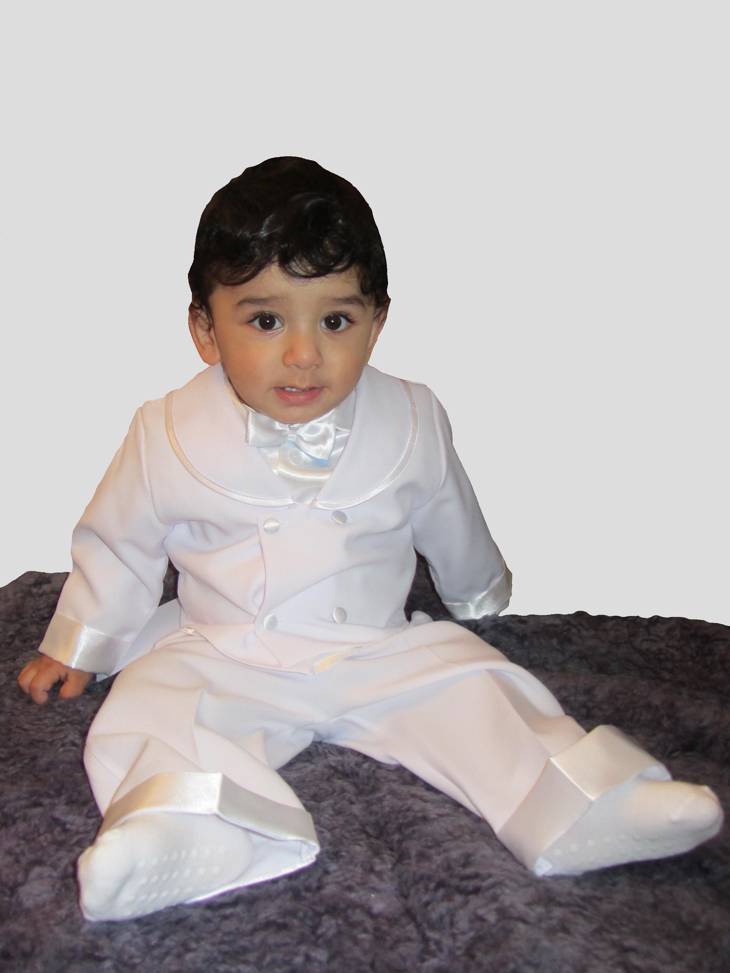 Edles und sehr zeitlos elegantes 5-teiliges Taufanzug (Hosen, Hemd, Blazer, Fliege und Hut) in schneeweiß Fabelhafter Taufanzug für den kleinen Charmeur damit der kleiner Schatz wie ein echter Prinz aussieht !!! Ausgezeichnete Verarbeitung, alles hervorragend aufeinander abgestimmt und von optimaler Qualität !!! Ideal für die Taufe, Kommunion, für jeden Festtag. Dezente und hochelegante Details, wie die Abschlüsse auf der Weste verleihen dem Anzug unvergleichliche Schönheit! Sehr leichte und total angenehme Stoffe. Die Hosen sind sehr bequem und mit Gummizug.