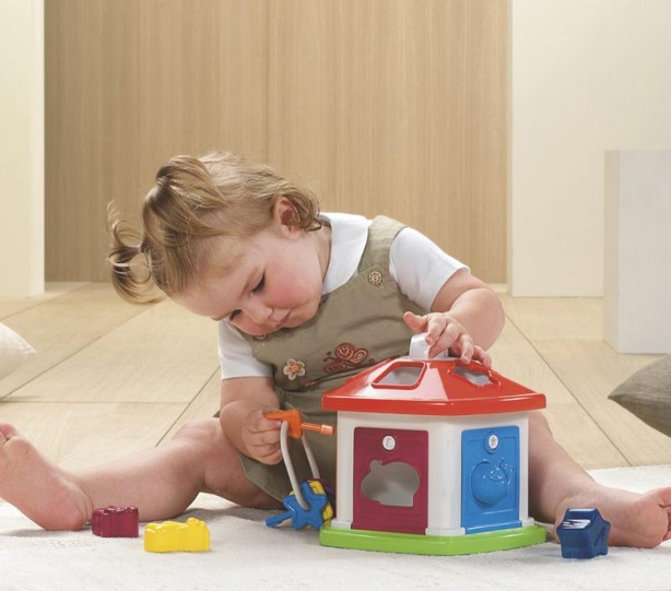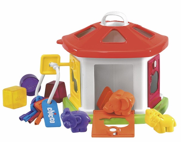Der Klassiker unter den Chicco Spielzeugen, mit 5 Tierchen und 5 Förmchen, die in die Öffnungen der Türen und des Dachs passen.