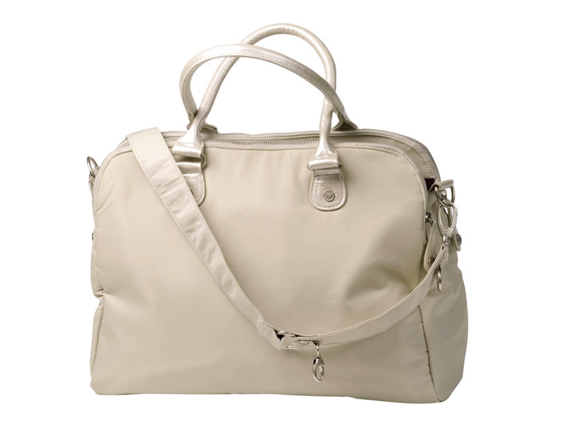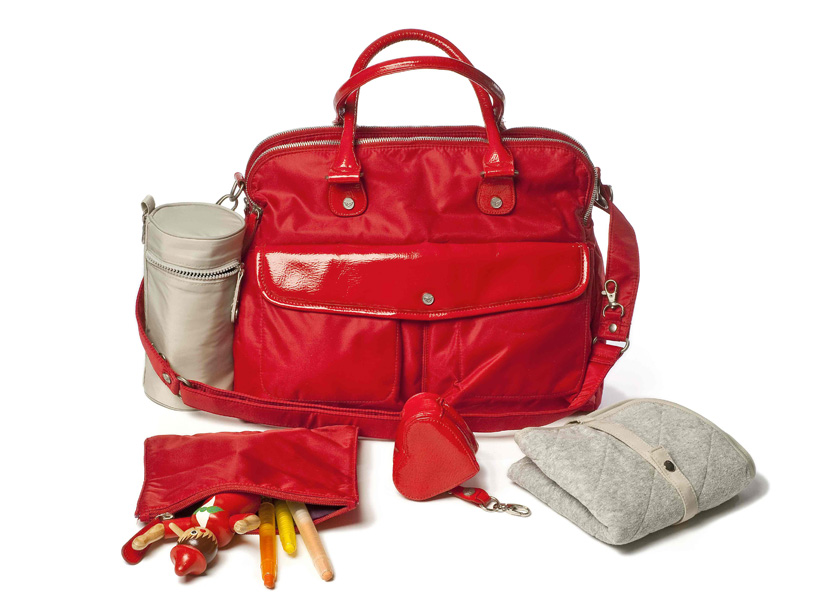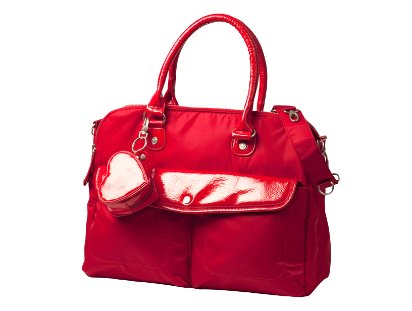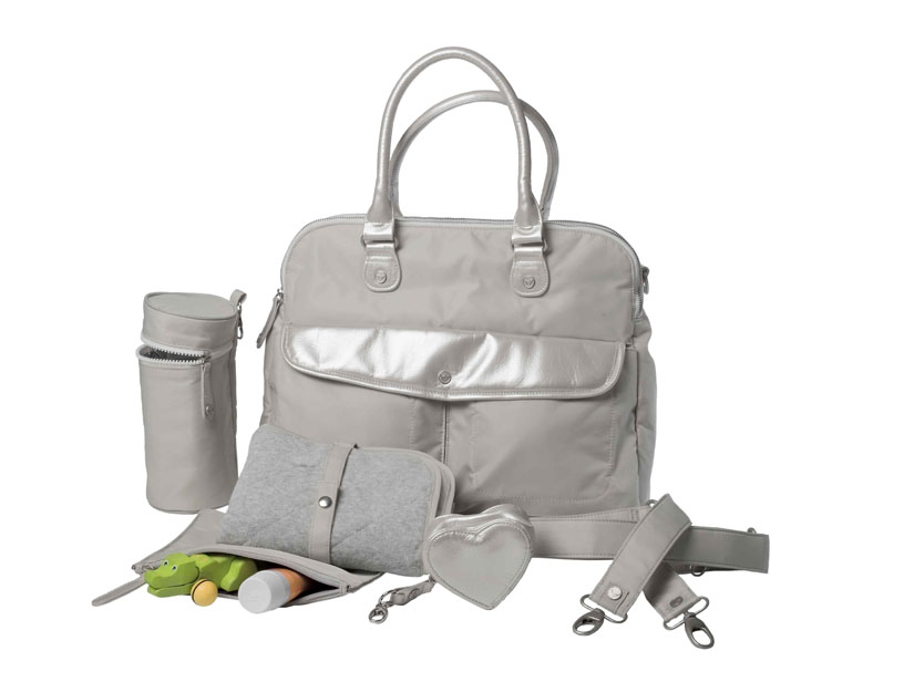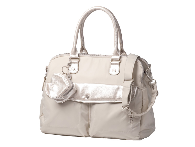 Metall-Accessoires und ein passendes abnehmbares Anhänger-Etui in Herzform –zum Beispiel für Schnuller –machen die City-Bag zum Hingucker.