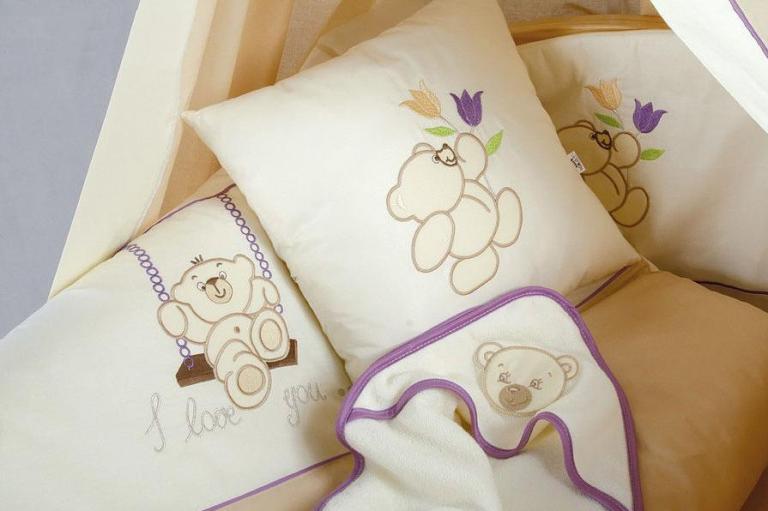 Sie besteht aus einer Duvetbezüg (mit Reissverschluss), Kissenbezüg, Nestchen und einem Himmel. Diese besonders hochwertige Bettwäsche zeigt liebevolle gearbeitete Applikationen auf der Bettdecke. Diese Design mit wünderschönen Applikationen bring Ihrem Baby viel Freude und Leben ins das Babyzimmer. In einem so liebevoll hergerichtetem Bettchen schläft es sich doch einfach gut.