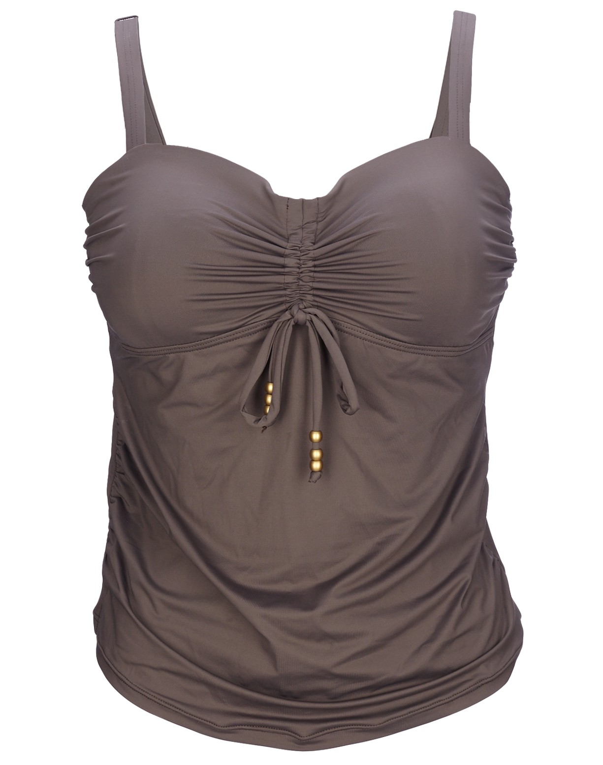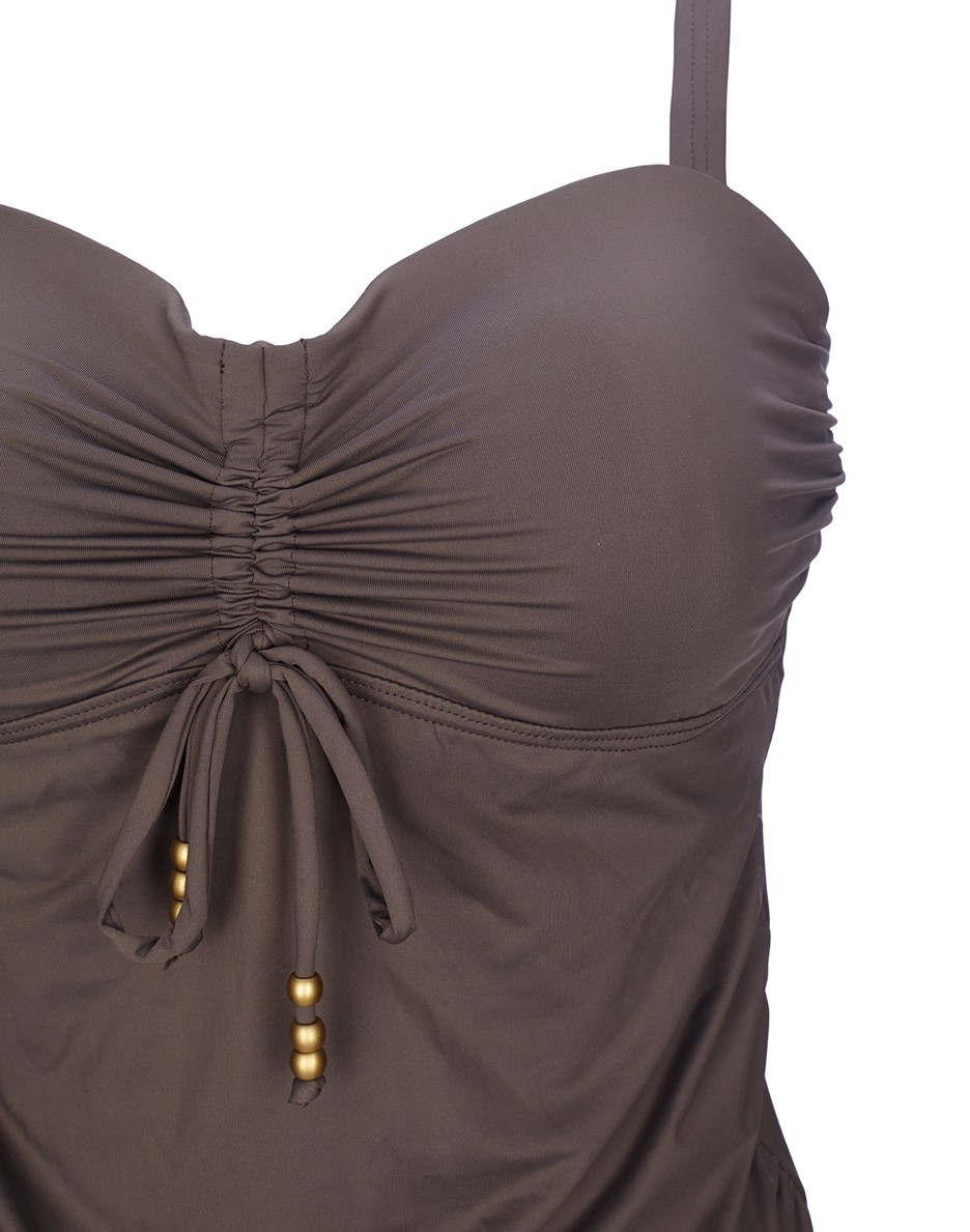 Dieses Bandeau Tankini-Top in Maxicup-Größen kommt wunderbar zur Geltung im edlen Farbton nougat garniert mit mattgoldenen Perlendetails.