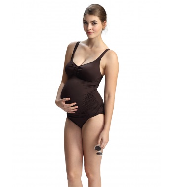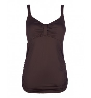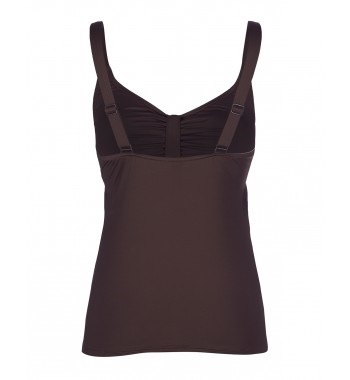 Das Tankiniset AMANDA aus edler Microqualität ist ideal geschnitten und kommt in seiner klassischen Form in einem wunderschönen Zartbitterschokoladenton daher. Das Tankinioberteil ehält seine tolle Paßform und den Halt durch eingesetzte Cups. Die verstellbaren, breiten und weichen Träger das Bikinioberteils sind angeschnitten und geben ein gutes Tragegefühl. Die gefütterten Cups sind ausgestattet mit herausnehmbaren Polstern und das Tankinitop wird vorn mit einem schön schlichten Band aus Obermaterial in Form gehalten. Der passende Bikinislip sitzt gefällig auf Hüfte und fügt sich mit den kleinen seitlichen Raffungen perfekt in das elegant Ensemble ein.