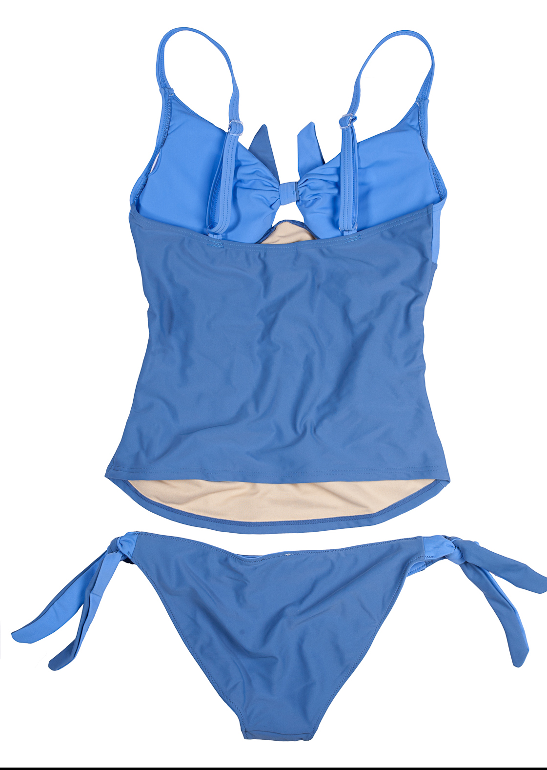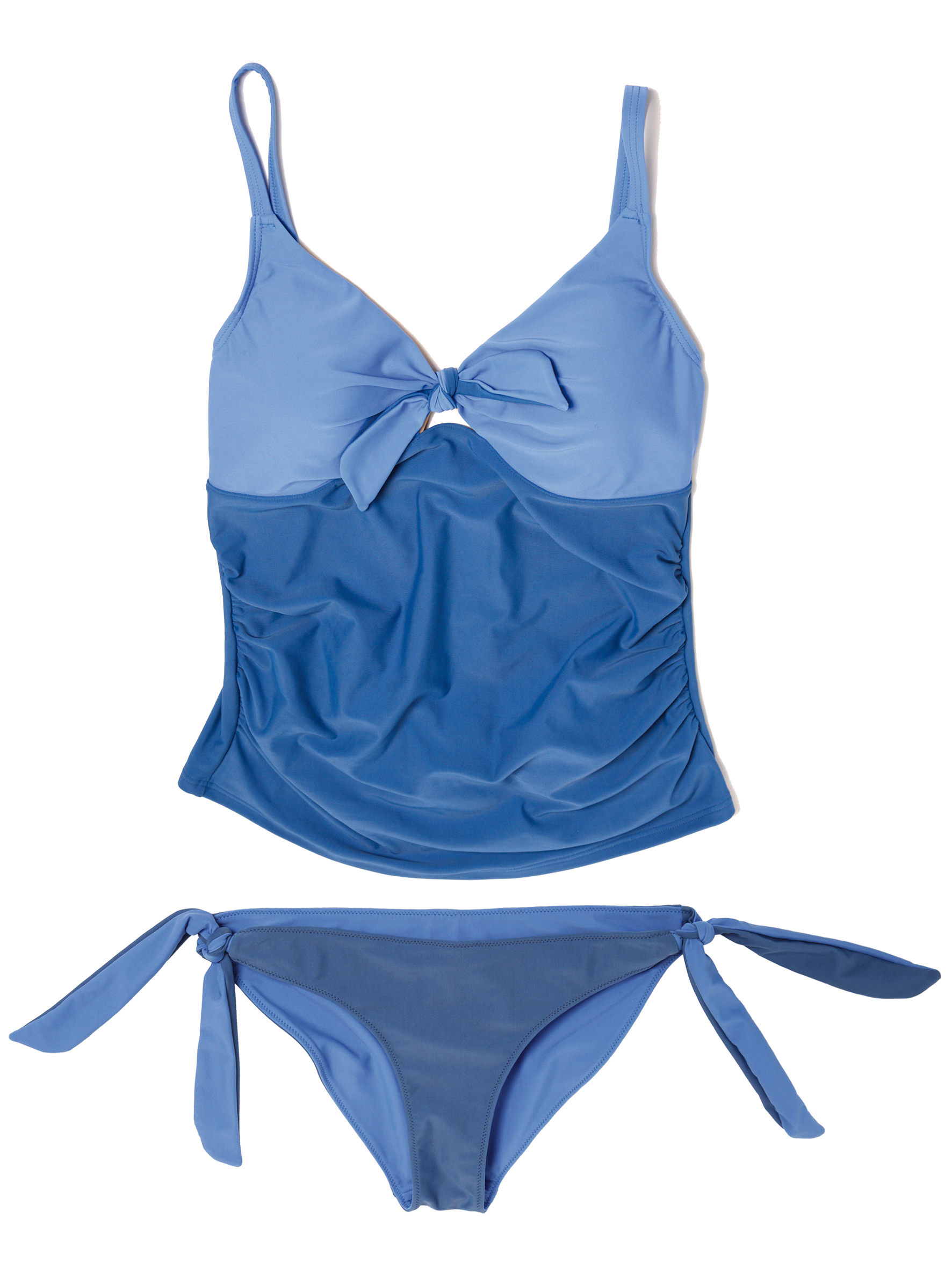 Das Tankini, wenn man schwanger ist: AMY mit trendigen Knotendetails in zwei angesagten Blautönen ist individuell verstellbar: Das Top hat herausnehmbare, gemouldete Polster, verstellbare Träger und seitliche Raffungen. Der tief geschnittene Bikinislip ist seitlich geknotet und kann beliebig gewendet und dem wachsenden Bauch angepasst werden.