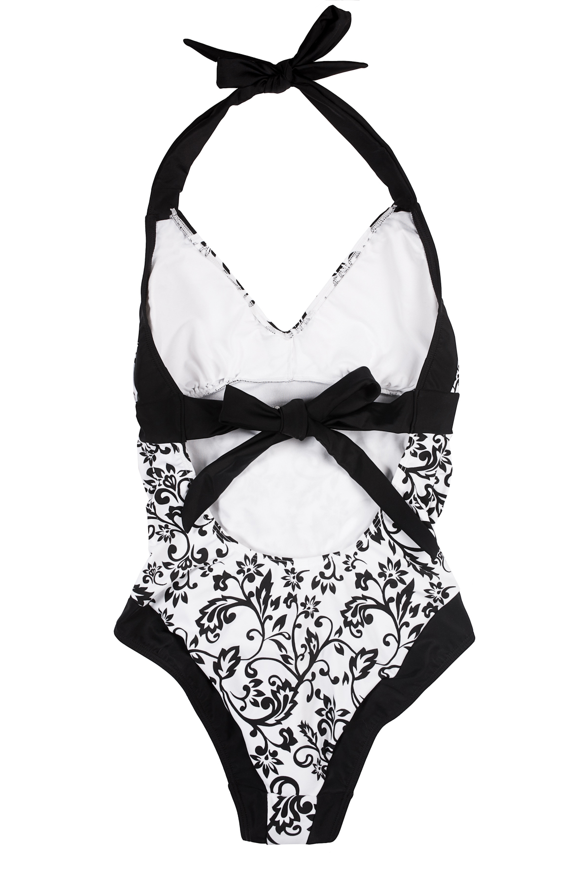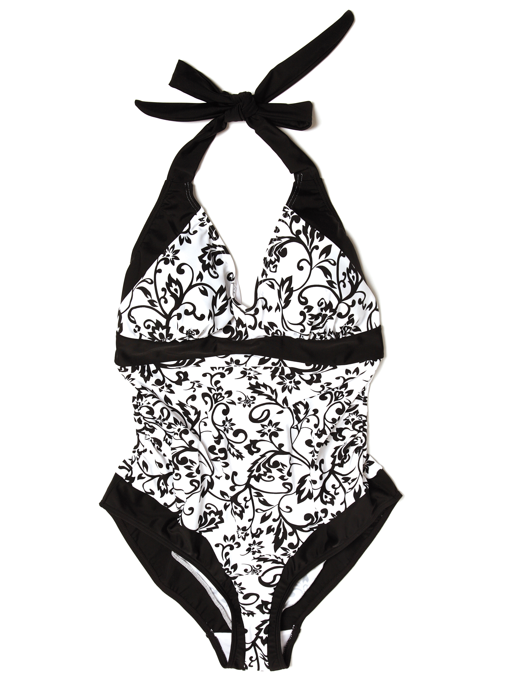 Dieser Einteiler in schwarz-weißem Blumenrankendruck ist im Nacken und im Rücken mit breiten weichen Trägen einfach zu binden. Die Cups sind mit herausnehmbaren, gemouldeten Polstern ausgestattet und das Design mit den schwarzen Einsätzen macht jeder Frau eine gute Figur. Entlang der Seitennähte ist der Stoff gerafft so dass ein optimaler Sitz auch mit zunehmenden Rundungen im Verlauf der Schwangerschaft garantiert ist