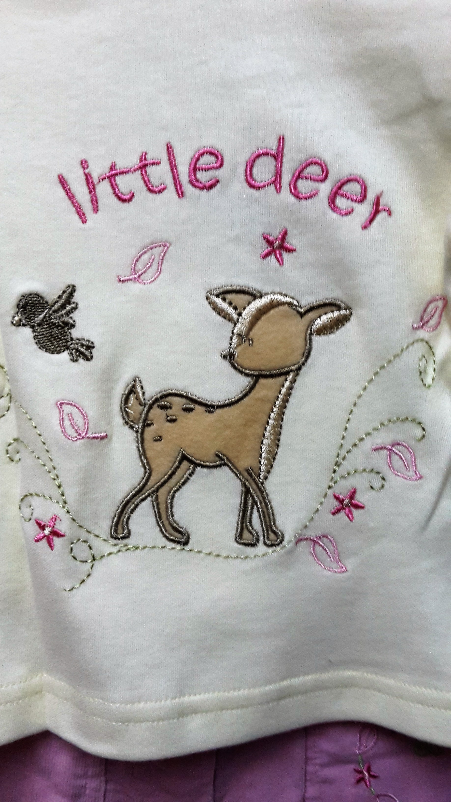 Das Set 3-teilig besteht aus einem niedlichen Sweatshirt mit süssen Stickerei und Applikationen, einer passenden Hose und Mützli.