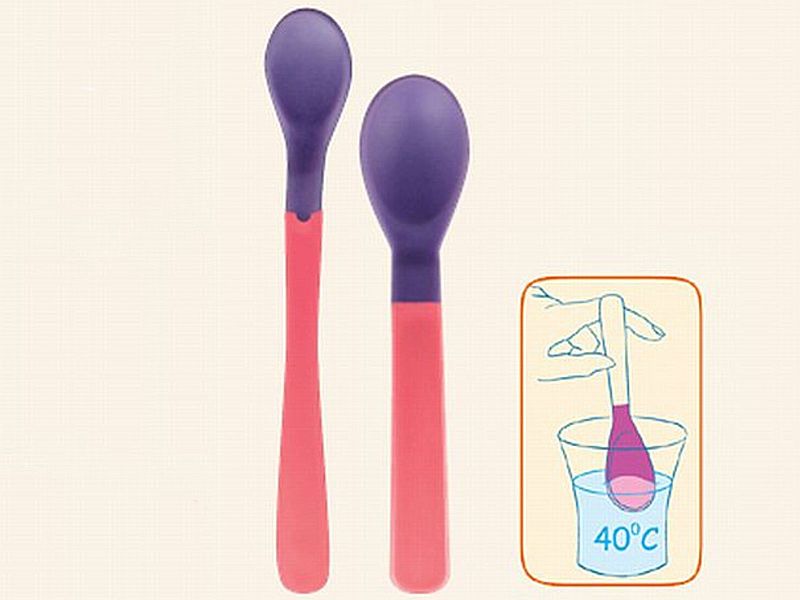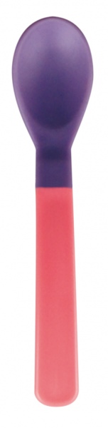 Unter der Wärmeauswirkung (ca.40°C) wechselt der Schöpfteil des Löffels seine Farbe von der violetten in die rosige – je heller der Farbton, desto höher die Temperatur.