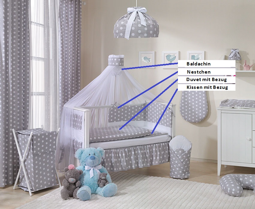 - mit 9 Bändel für sicherer Befestigung an dem Bettchen