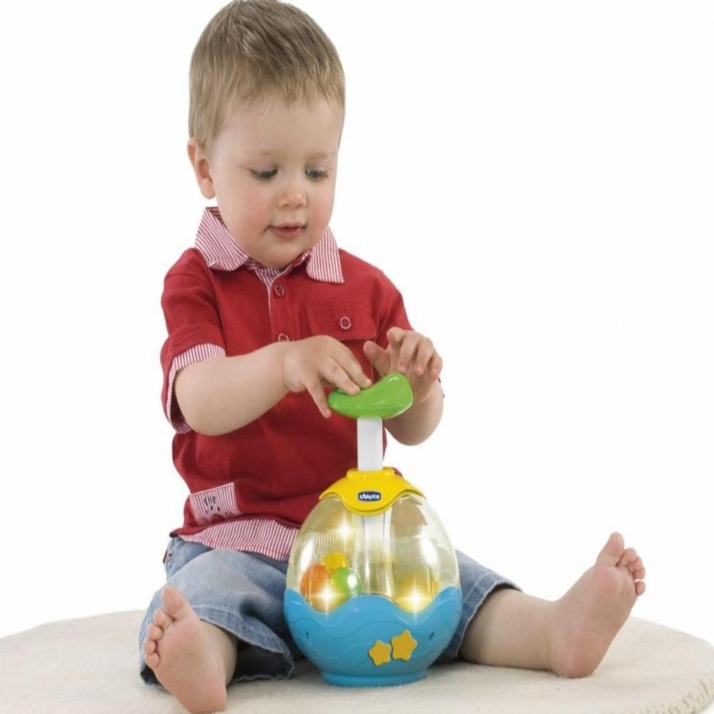 Wenn man den Knopf drückt, beginnen die bunten Fischlein sich zu drehen und es werden lustige Lichteffekte und Melodien aktiviert, die alle Sinne des Kindes ansprechen.