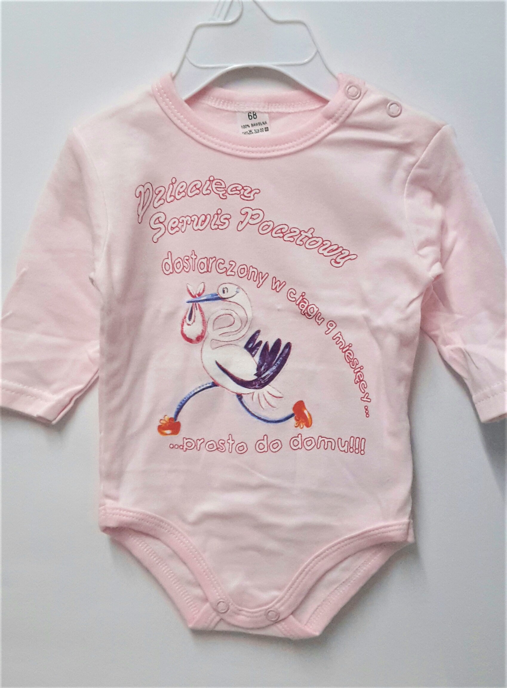 Langärmelige Body "Baby Post Service zugestellt innert 9 Monaten direkt nach Hause" (Beschreibung in polnisch) aus weicher Baumwolle.