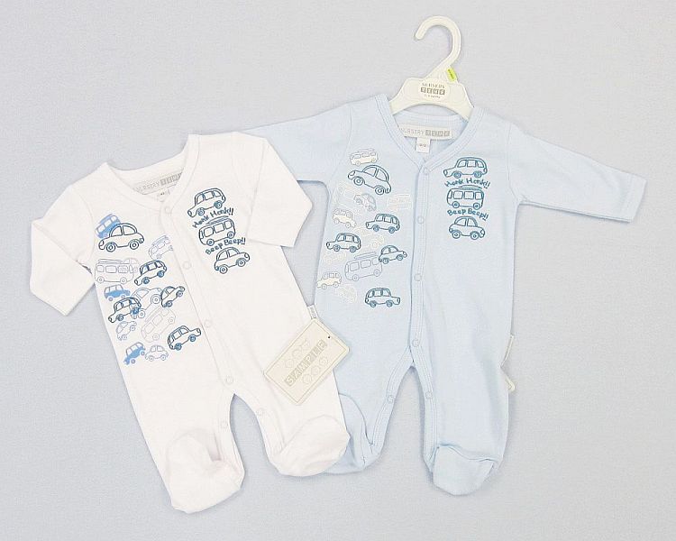 Baumwolle Pyjama "Autos": 0-3M weiss