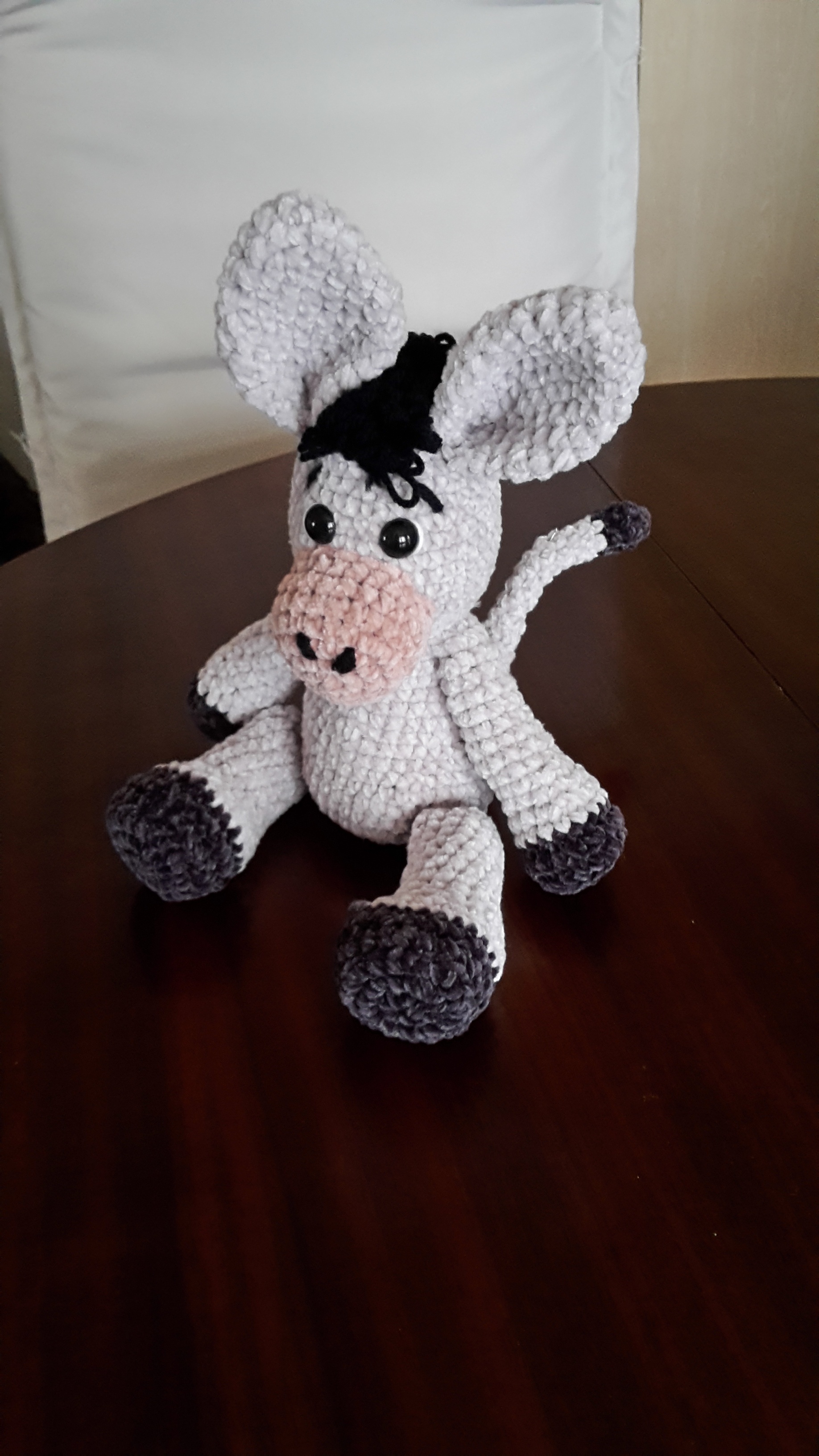 Der drollige Häkel-Esel ist ca. 30 cm (von Ohren bis Hufen) und wartet nur darauf geknuddelt zu werden.