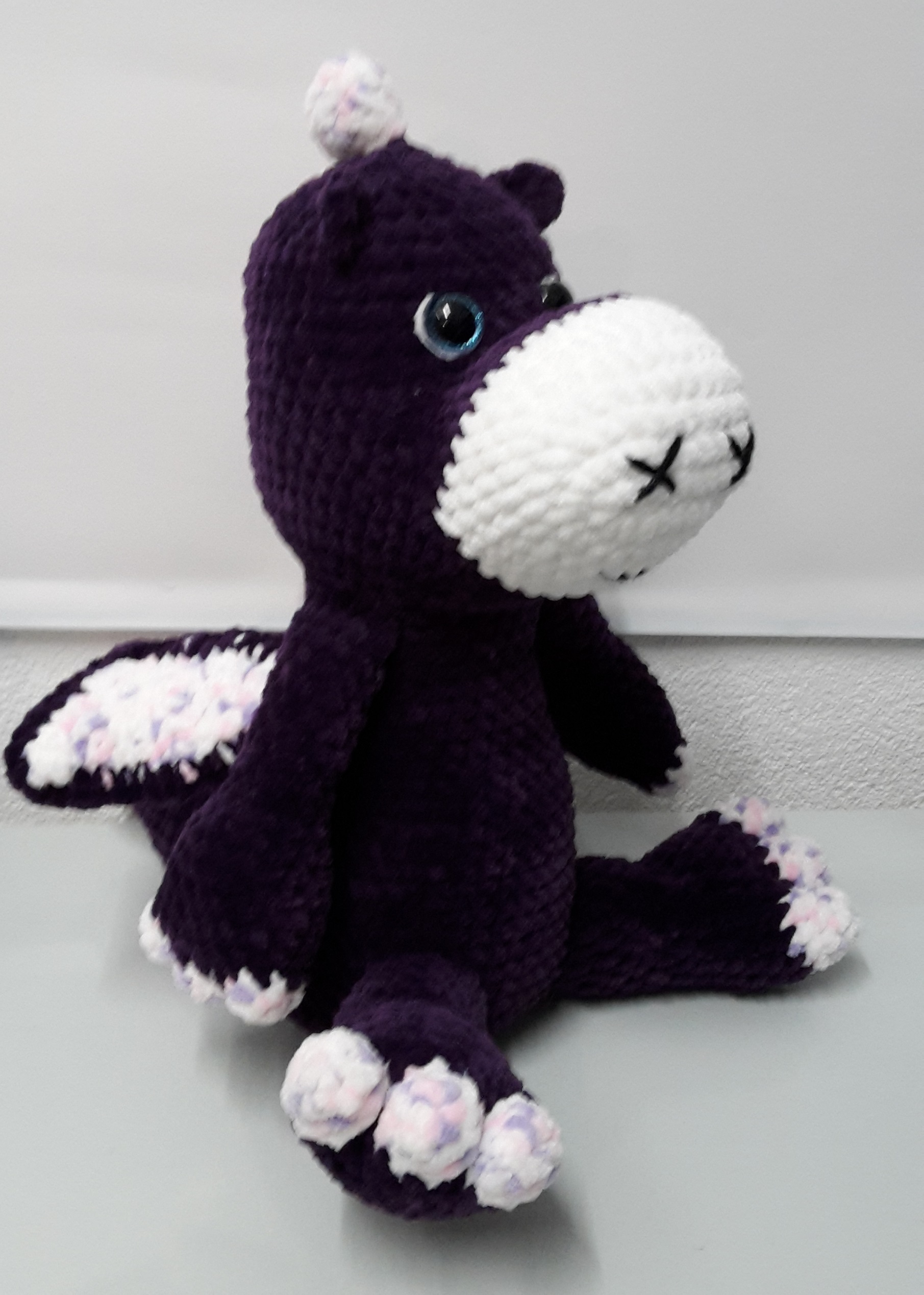 Mit Liebe zum Detail von Hand gehäkelter Drache in lila. Einfach nur entzückend!