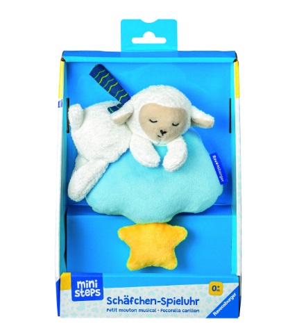 Diese traumhaft schöne, herrlich weiche Spieluhr wird schnell zum vertrauten Begleiter für das abendliche Gute-Nacht-Ritual. Am gelben Stern aufgezogen spielt sie sanft das Lied "Schlaf, Kindlein, schlaf". Mit den Bändchen lässt sie sich einfach am Bettchen befestigen oder auch flexibel unterwegs z.B. am Kinderwagen einsetzen. Auch zum Kuscheln ist sie dank ihrer hochwertigen, extra flauschigen Materialien sehr gut geeignet. Das Spielwerk kann zum Waschen entnommen werden.