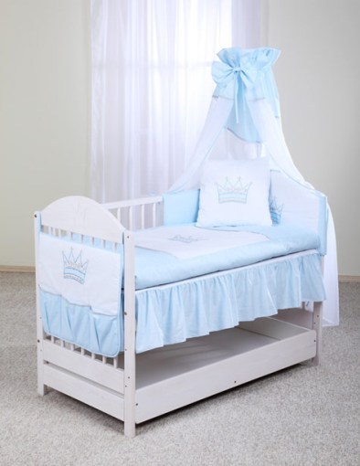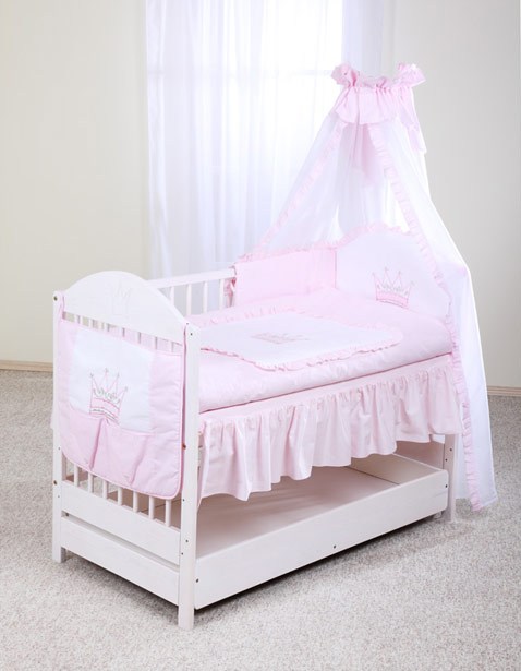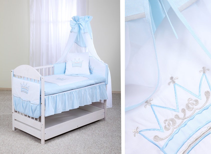 Bettwäsche-Set "Krone" mit Stickerei und Applikationen in rosa oder blau