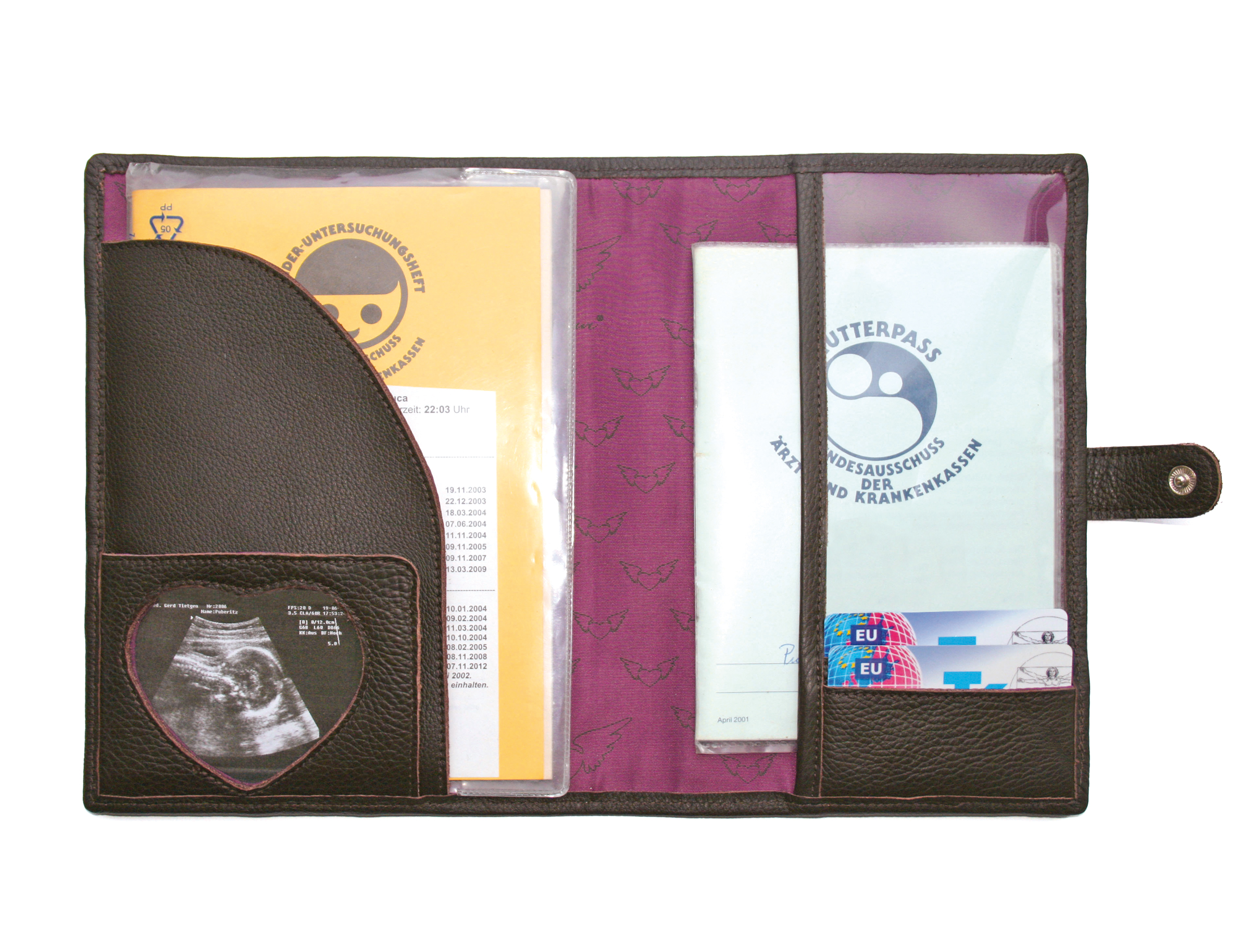 Das klassisch schöne Etui für Mutterpass und Kinderuntersuchungsheft aus 100% dunkelbraunem Rinderleder ist ein treuer Begleiter vom ersten Moment der Schwangerschaft an bis hin zur letzten Untersuchung der fast schon erwachsenen Kinder.