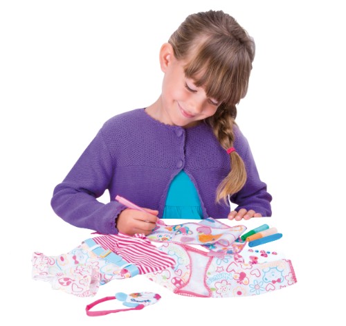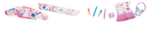 • Besonderheit: Kleidung kann mit mitgelieferten Stiften bemalt und danach wieder weiß gewaschen werden
