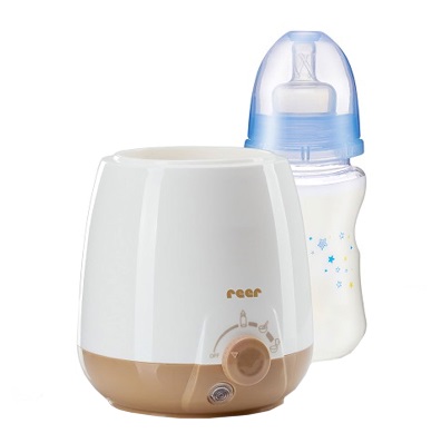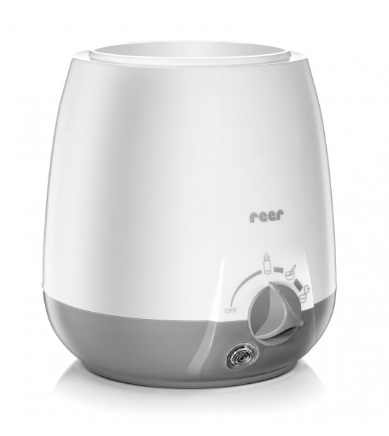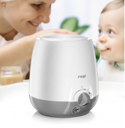 Der Reer Babykosterwärmer SimplyHot eignet sich für kleine Gläschen, Standardfläschchen und Weithalsfläschchen. Er ist ideal für alle Nahrungsbehälter mit einem Durchmesser von bis zu 70 mm. Mit diesem Gerät kann die Babynahrung schonend und gleichmässig aufgewärmt werden. Der Erwärmer verfügt über einer Warmhaltefunktion und eine optische Kontrollleuchte. Weitere Eigenschaften sind eine einfache und bequeme Gerätebedienung sowie eine stufenlose Thermostatregelung. Eine praktische Kabelaufwicklung befindet sich im Gehäuseboden. Das Erwärmen von Milch dauert etwa 6-8 Minuten und Babynahrung 8-10 Minuten