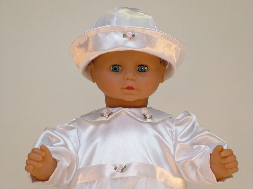 Weisses Taufkleid mit Hütchen (ohne Schuhe).